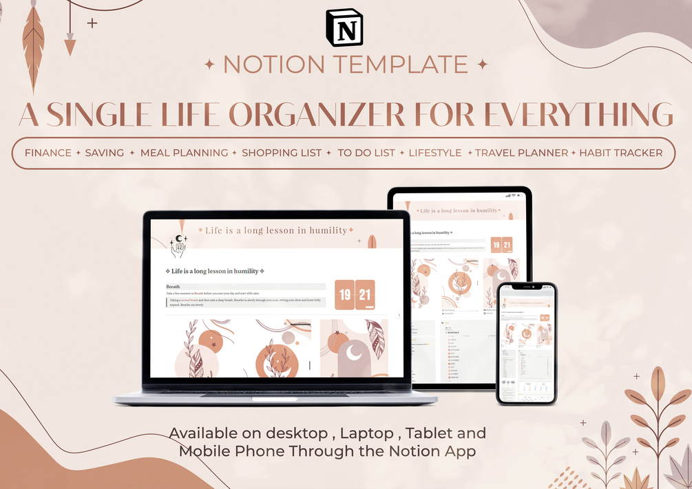 Notion Template, A single life organizer for everything, Personal Planner , Aesthetic Wellness Digital Notion Planner, Editable Template